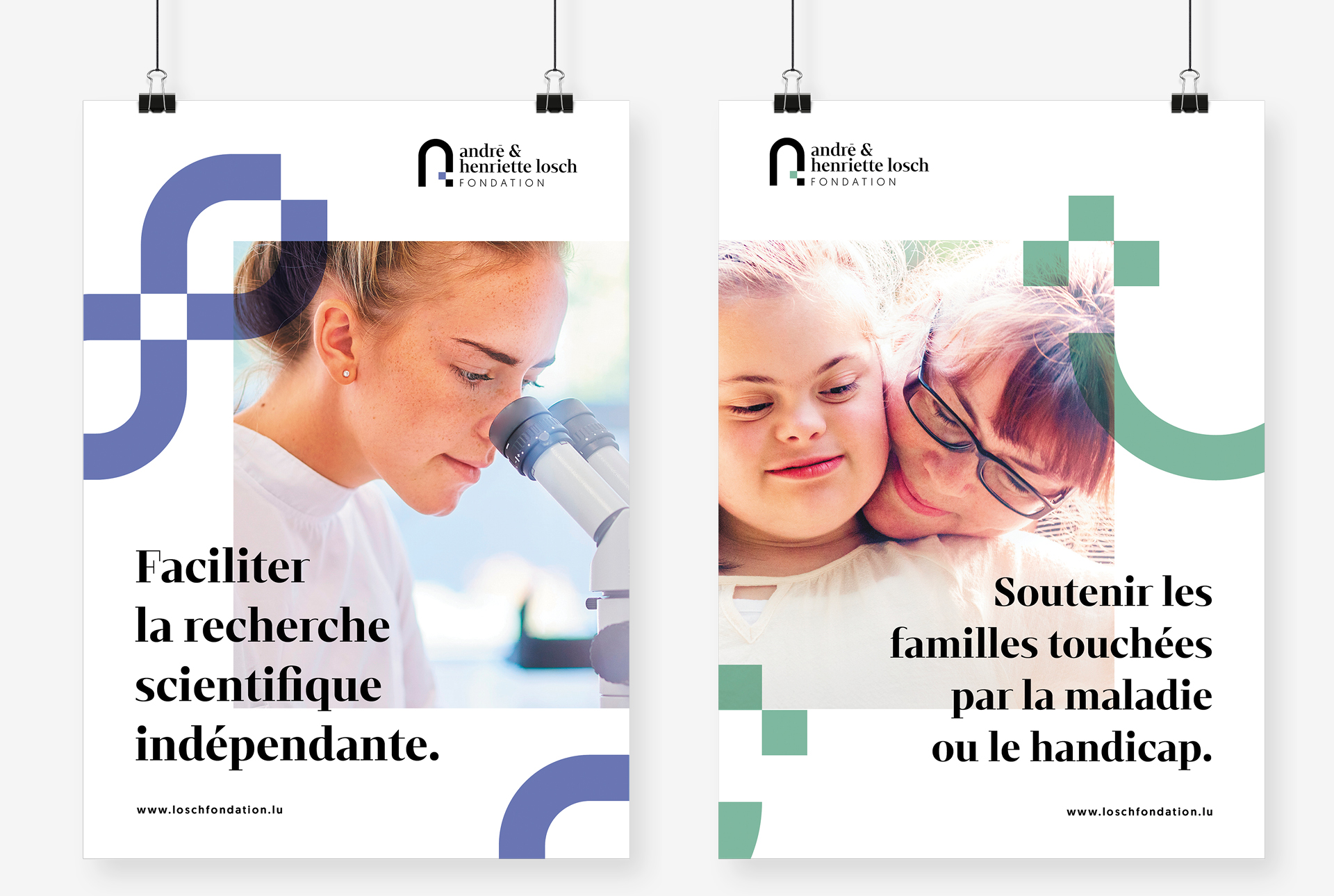 La Fondation André Losch existe depuis plus de 10 ans. Le souhait de ses dirigeants est de communiquer de façon plus soutenue envers son public, ses bénéficiaires et ses partenaires. De nombreux supports de communication ont déjà été réalisés, mais l’ensemble manque de cohérence. Notre mission : dynamiser et homogénéiser l’identité visuelle de la Fondation.